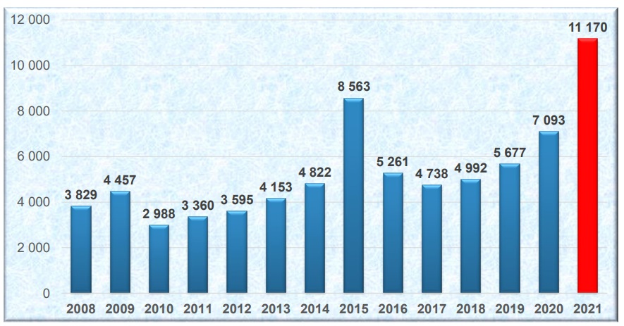 Что касается незаконной транзитной миграции, то в 2021 году на ней попались 1330 человек. Это на 173% больше в межгодовом сравнении. Среди транзитных нелегалов преобладали граждане Афганистана, Сирии и Марокко, направлявшиеся в Германию.
