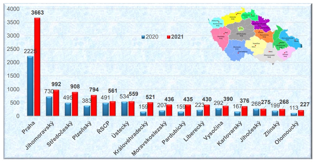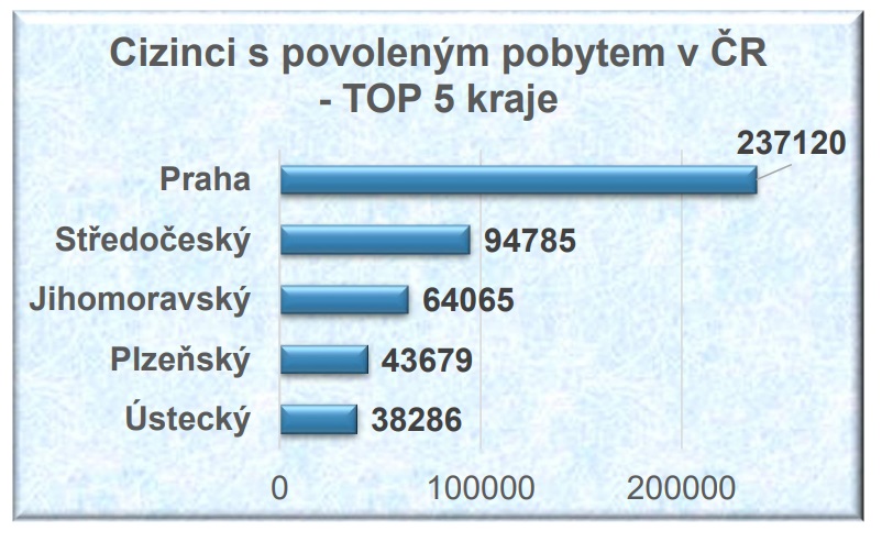 Больше всего легальных мигрантов проживало в Праге и Среднечешском крае:
