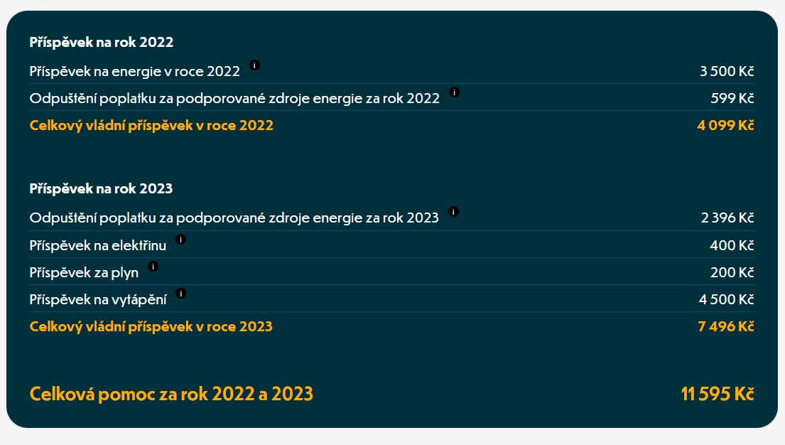 Размер итоговой помощи зависит от уровня потребления конкретного домохозяйства. Для малых потребителей она составит около 11 тыс. крон, для средних – около 14-15 тыс. крон, для крупных – примерно 18 тыс. крон.