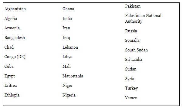На сегодняшний день иметь аэропортовую транзитную визу для транзита через чешские аэропорты обязаны граждане следующих стран: