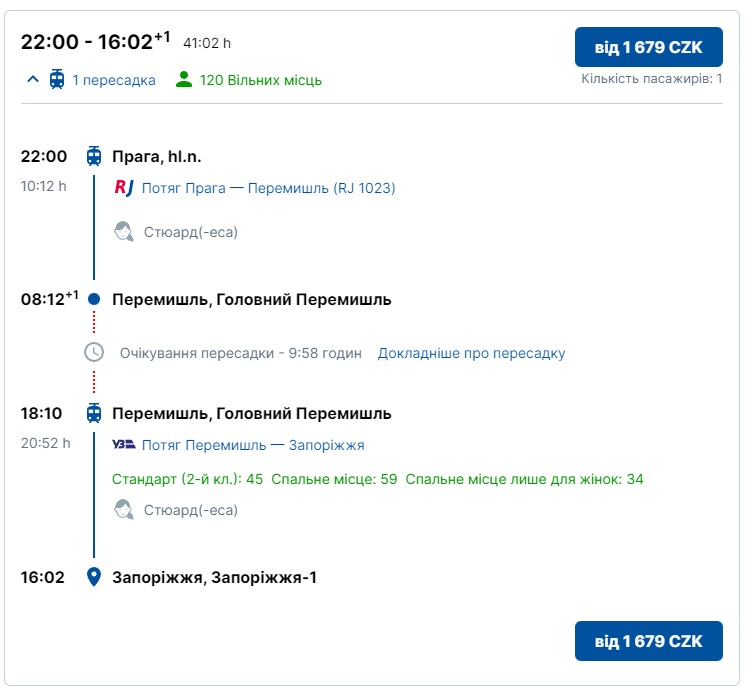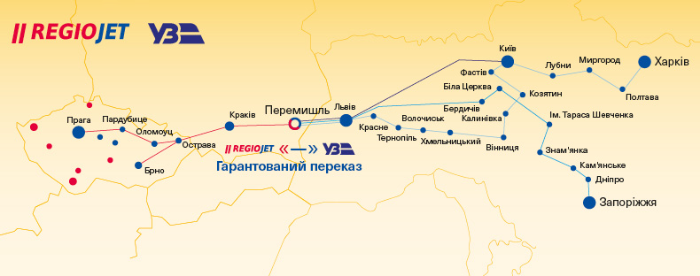 Схема сотрудничества осталась прежней: пассажиры поедут на ночном поезде RegioJet из Праги до польского города Пшемысль (Przemyśl), который служит пересадочным узлом для путешествий в Украину. Там они пересядут на состав компании «Укрзализныця» и уже на нем доберутся до станции назначения.