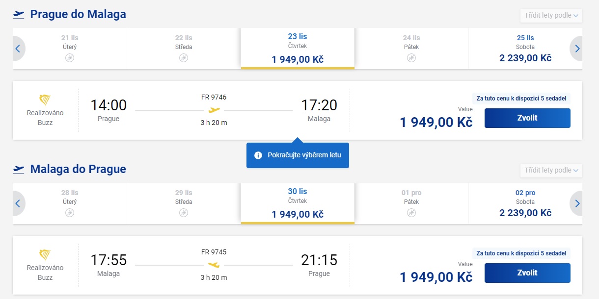 Ирландский лоукостер Ryanair спустя полтора года возобновит полеты между Прагой и испанским городом Малага. С 30 октября 2023 года перевозчик начнет выполнять прямой рейс трижды в неделю – по понедельникам, четвергам и субботам.
