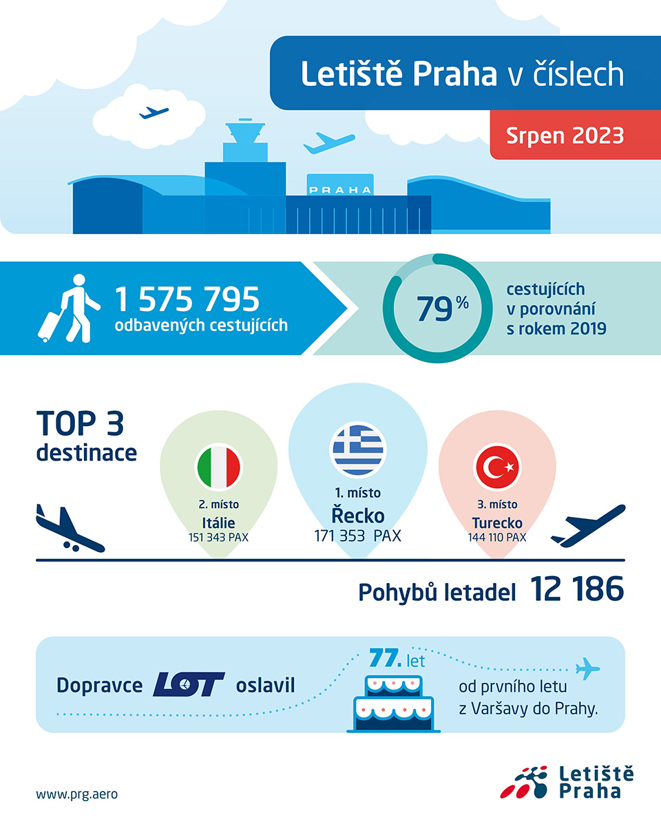 В последнем месяце лета самолеты совершили в пражском аэропорту 12186 взлетов и посадок.