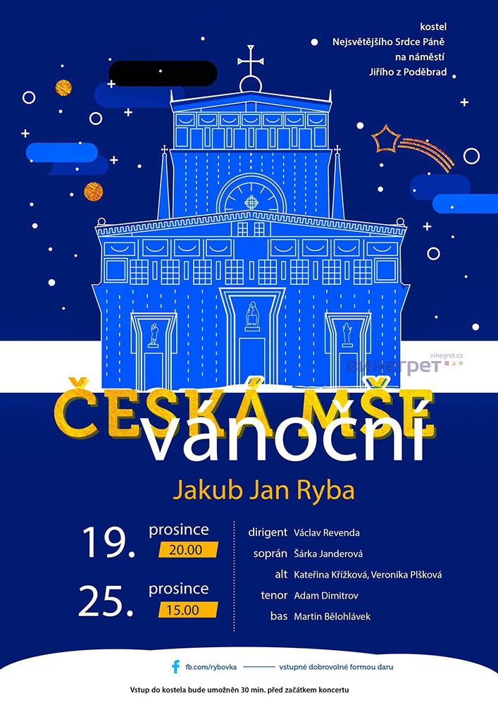 В знаменитом пражском костеле Пресвятого Сердца Господня, расположенном на площади Jiřího z Poděbrad, музыканты и певцы исполнят «Чешскую рождественскую мессу» (Česká mše vánoční) — классическое произведение композитора Яна Рыбы.