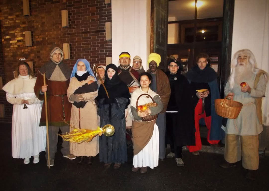 С 17:45 энтузиасты в нарядах Девы Марии, Святого Иосифа, младенца Иисуса, ангела, трех волхвов и других персонажей будут ездить на эскалаторе вверх и вниз, даря пассажирам праздничное настроение.