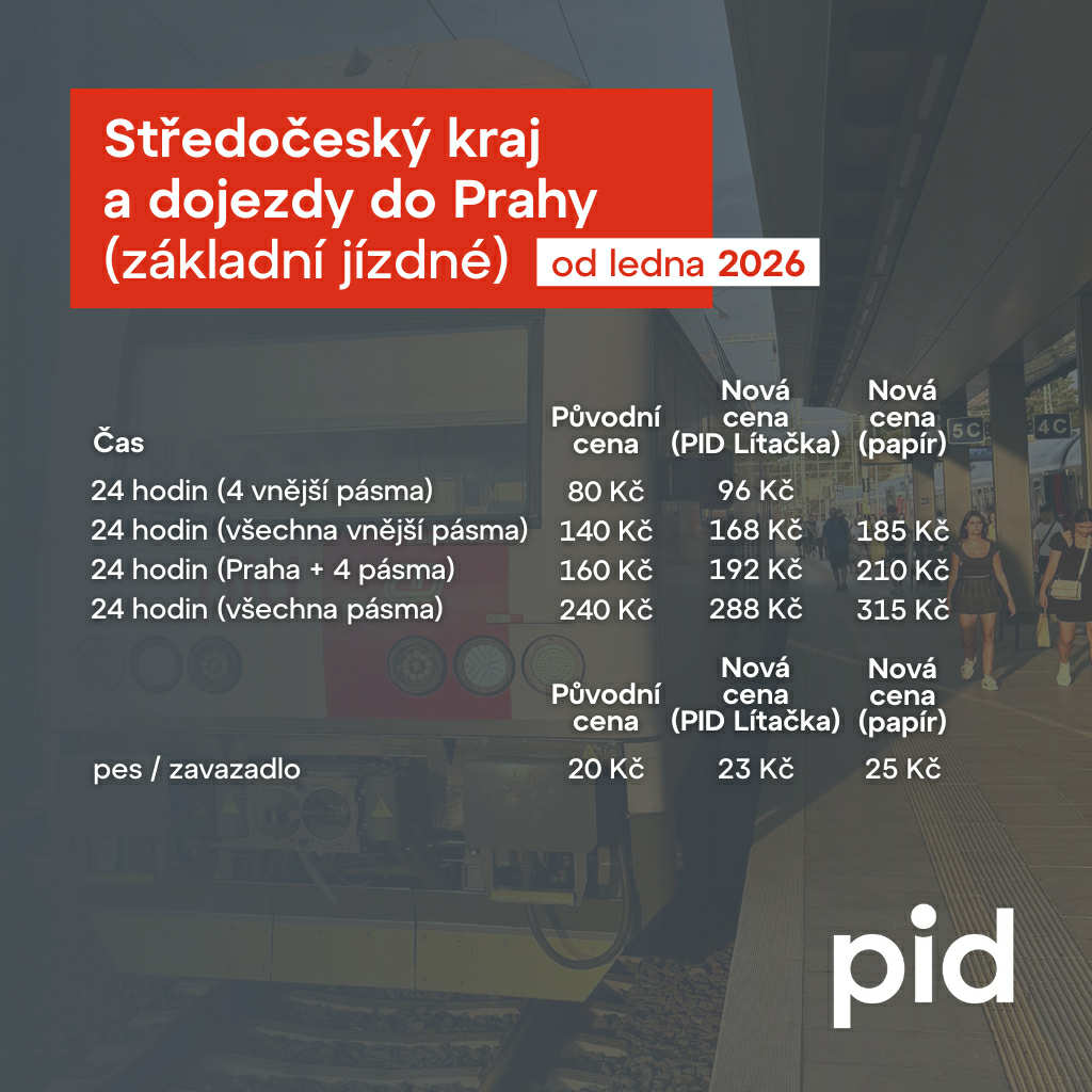 Также горсовет Праги утвердил подорожание билетов на автобусы и электрички в Среднечешском крае (в единой транспортной системе PID). Там с 1 января бумажные билеты подорожают на 30%, а электронные — на 20%.