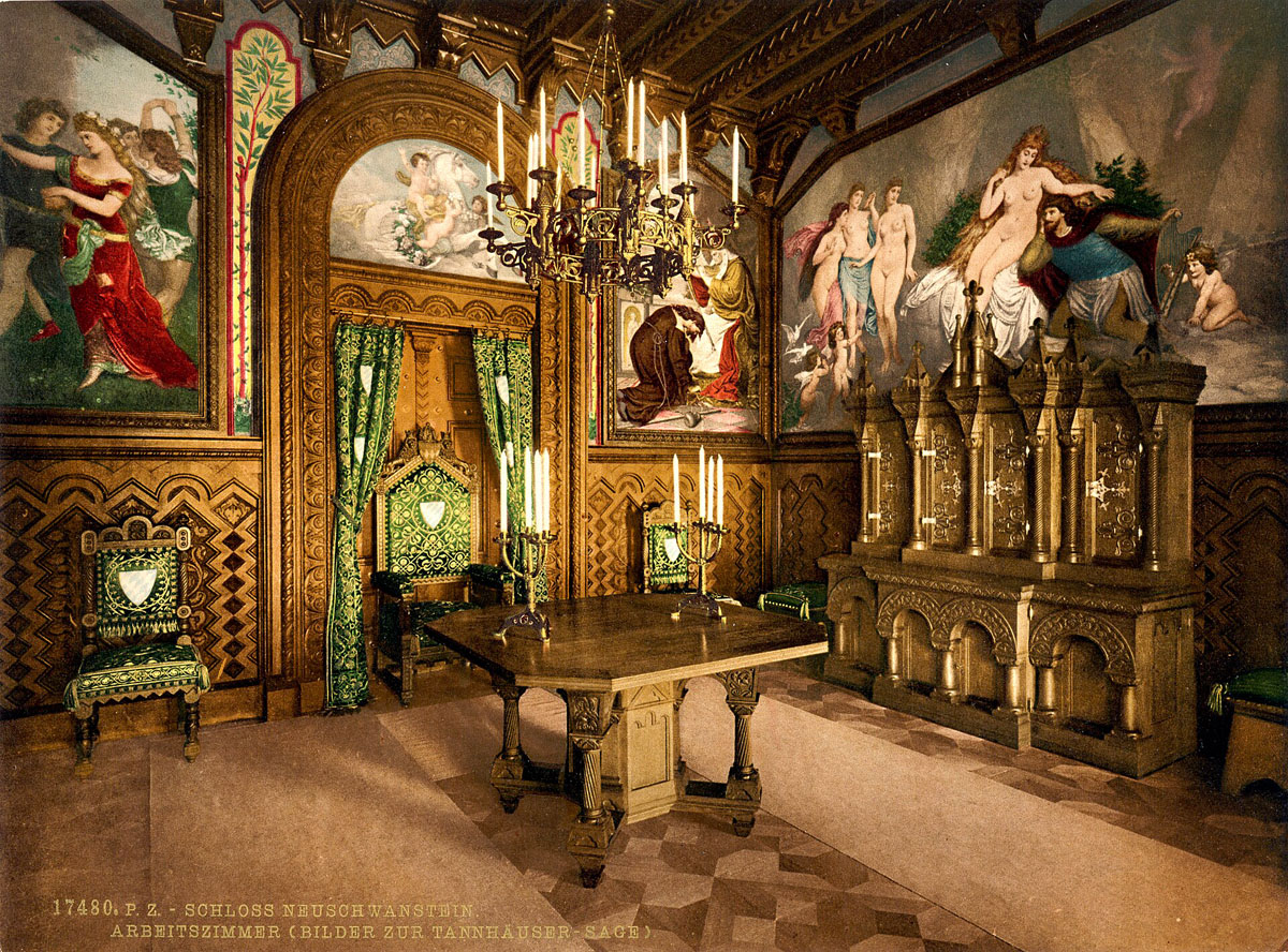 Именно здесь Людвиг II погружался в мир своих фантазий и грез – поэтический мир Средневековья. Возведенный и оформленный в стиле средневековых форм, но оснащенный по самому последнему слову техники XIX века, Нойшванштайн представляет собой один из самых впечатляющих архитектурных образцов историзма.
