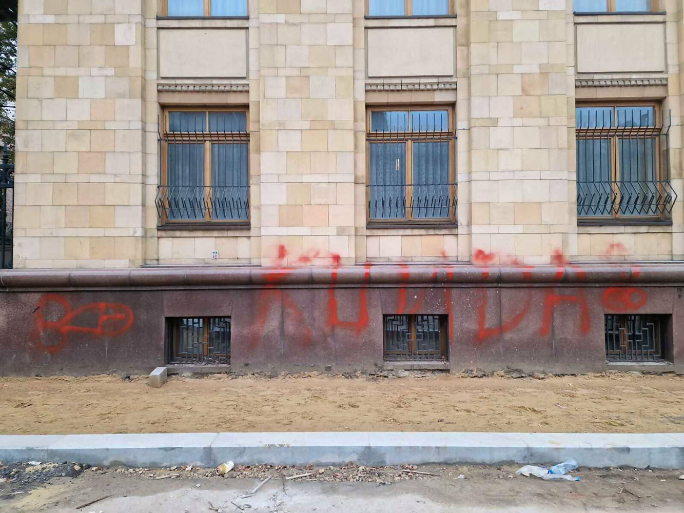 Посольство Чехии в Москве разрисовали нецензурными надписями