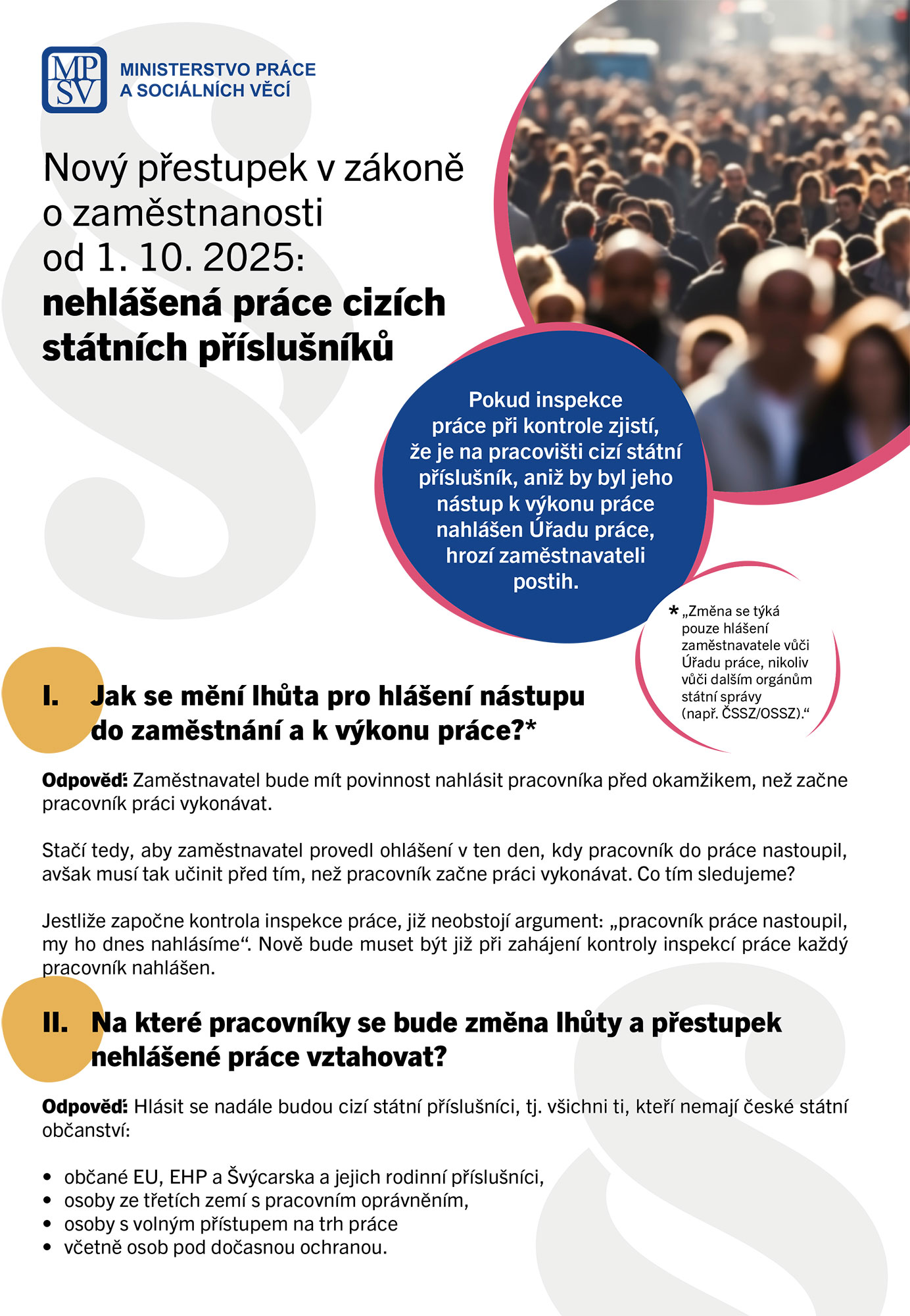 В среду, 1 октября, в Чехии вступила в силу поправка к закону о занятости, которая вносит изменения в уведомление о начале трудовой деятельности для иностранных граждан и вводит понятие «незаявленная работа» (nehlášená práce). Об этом на своем сайте сообщило Министерство труда и социальных дел ЧР.