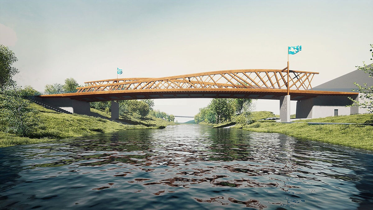 «Новый мост соединит обе части города – Моравскую Остраву и Силезскую Остраву. Каждая имеет свой характер, поэтому мост имеет асимметричные части несущей конструкции, которые символически встречаются над рекой.