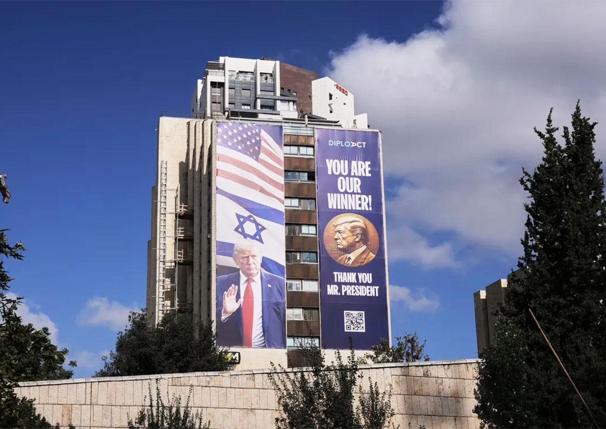 В понедельник американский президент Дональд Трамп лично прибыл в Тель-Авив. На улицах города в его честь вывесили баннеры со словами благодарности.
