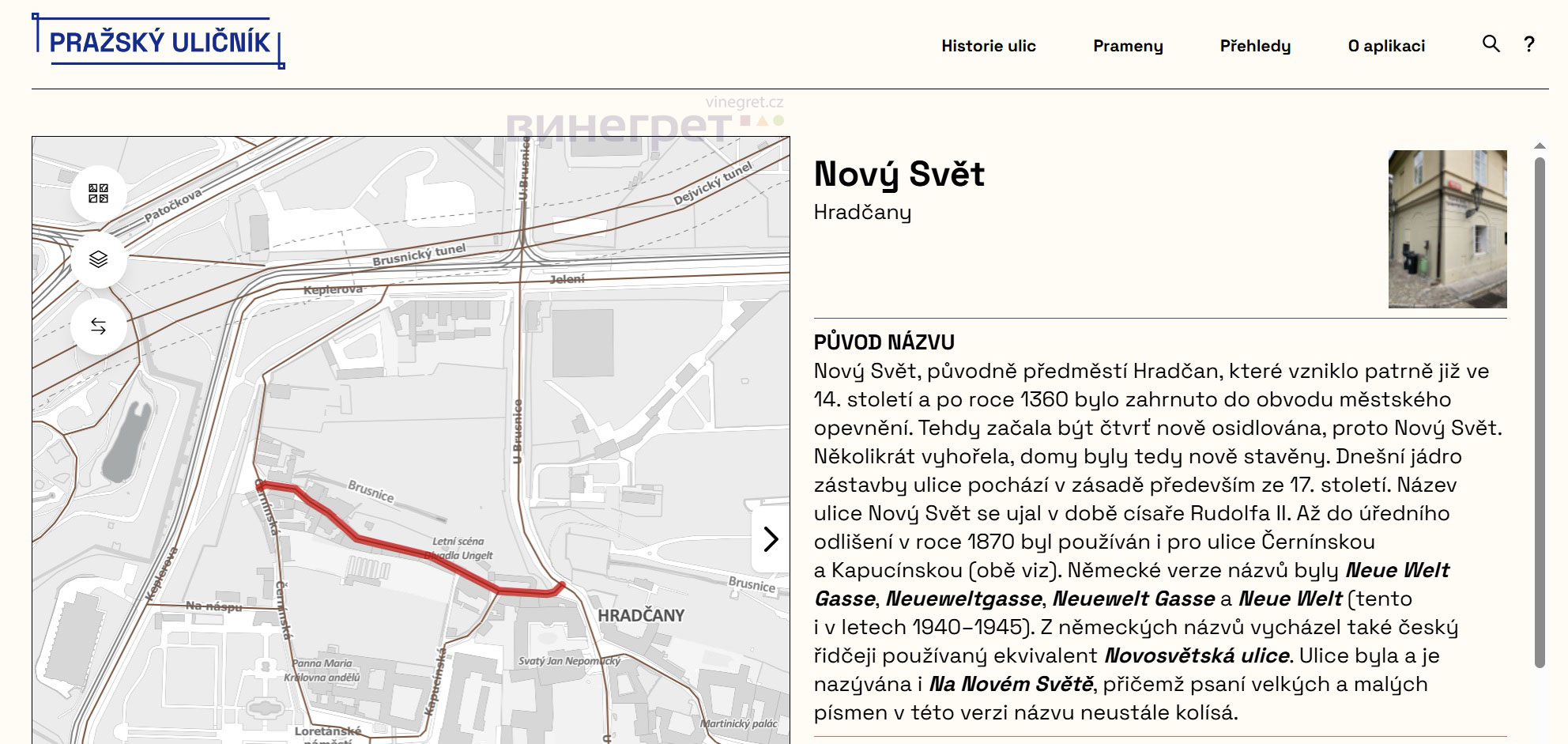Пражский городской архив совместно с Институтом планирования и развития Праги запустил новый онлайн-проект Pražský uličník. Он предлагает возможность бесплатно и легко найти основную информацию о происхождении названий всех столичных улиц, площадей, парков и набережных.