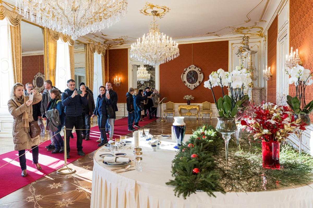 Посетители увидят парадные залы Нового королевского дворца, где президент Чехии встречает иностранные делегации, проходят мероприятия на высшем уровне.