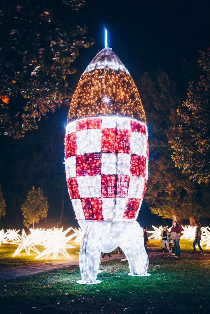 Парк представляет собой 1,5-километровую пешеходную трассу, вдоль которой расставлены различные фигуры и арт-объекты, созданные из тысяч крохотных лампочек.