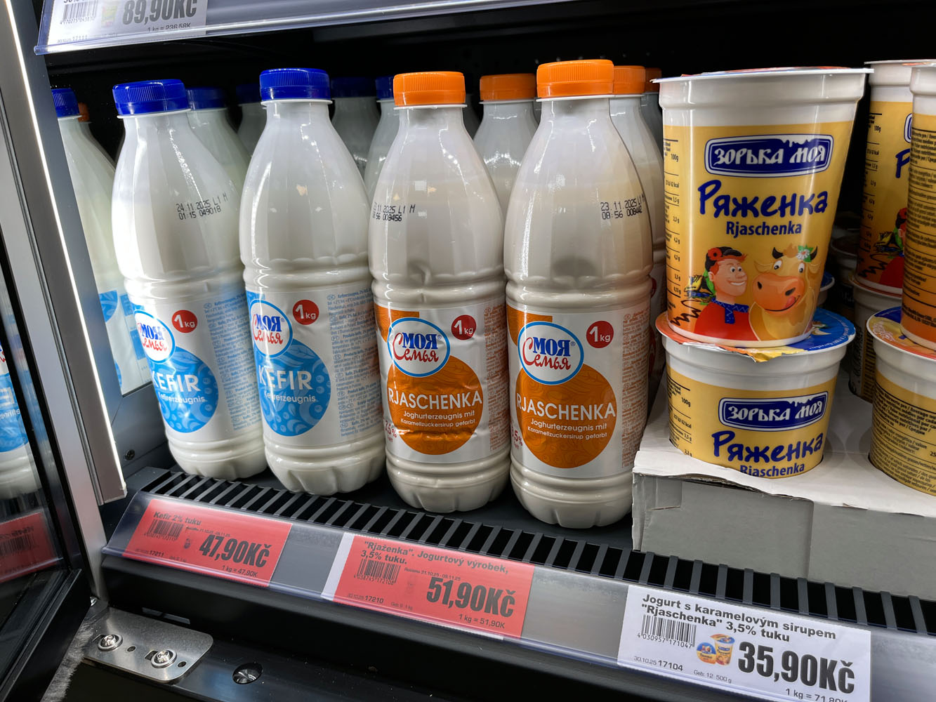 Вкусный творог, жирная сметана, кефир, ряженка, нежное сливочное масло, сыры, и конечно «правильный» майонез, который в обычных чешских супермаркетах не найти.