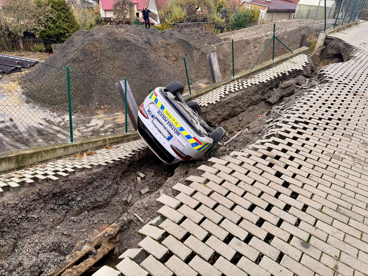 Утром в понедельник, 3 ноября, на улице Ostřicová в пражском районе Стодулки произошел обвал склона, который увлек за собой часть проезжей части и припаркованный автомобиль муниципальной полиции.