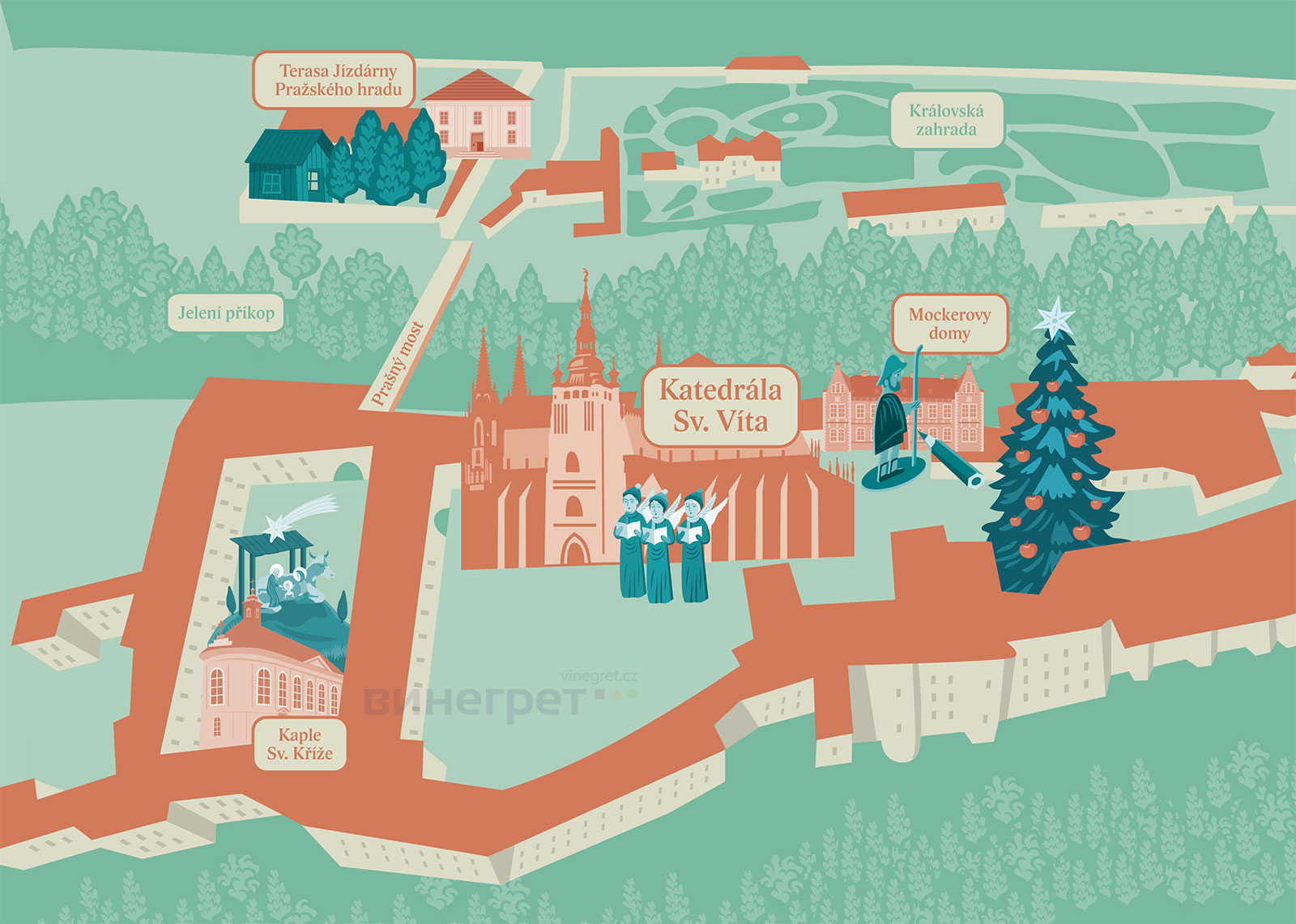 Кроме того, каждое воскресенье Адвента (30 ноября, 7, 14 и 21 декабря) оркестры караула Пражского Града и чешской полиции, а также детский певческий хор, будут исполнять рождественские мелодии и колядки перед входом в Собор Святого Вита.
