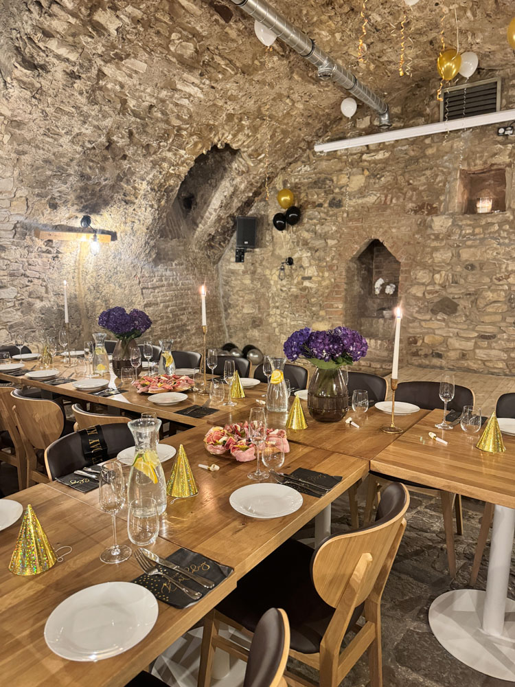 Часть зала на первом этаже можно отделить для закрытой вечеринки, а внизу имеется отдельное просторное помещение, где вас никто не побеспокоит.