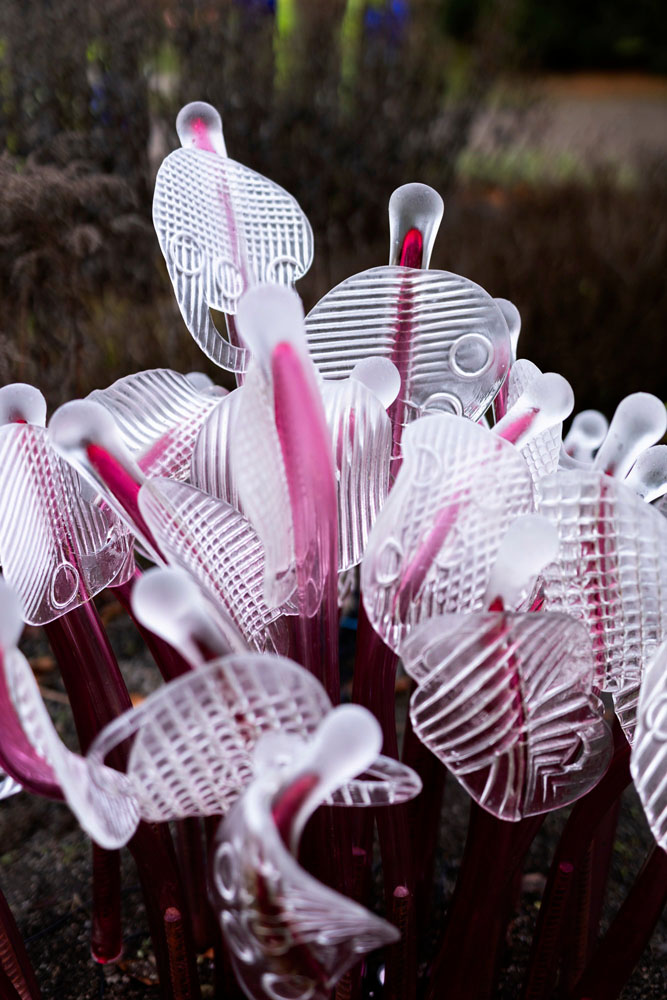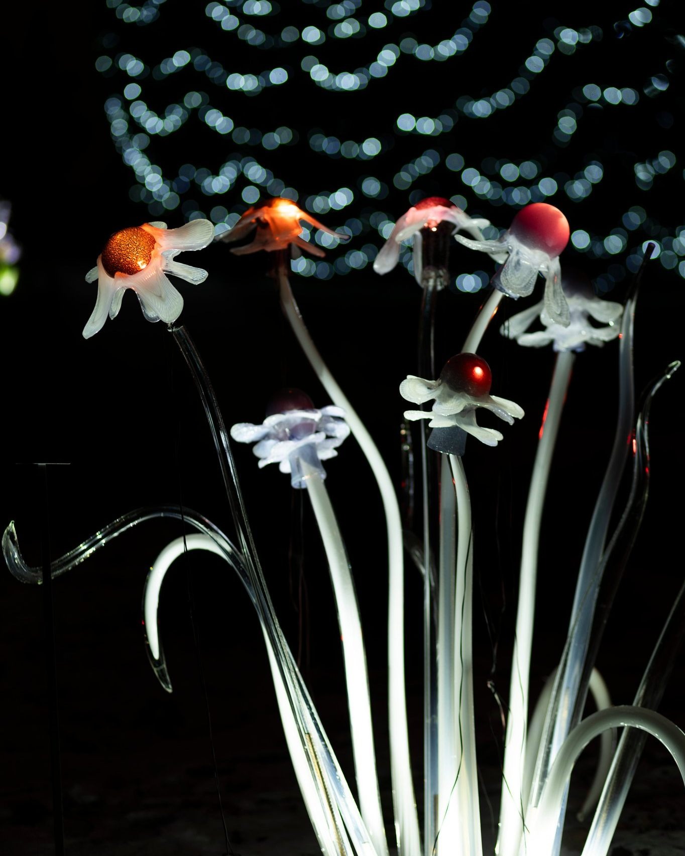 В пятницу, 28 ноября, в Ботаническом саду Праги второй год подряд открылась выставка стеклянных скульптур под названием «Хрустальный сад» (Křišťálová zahrada 2025).