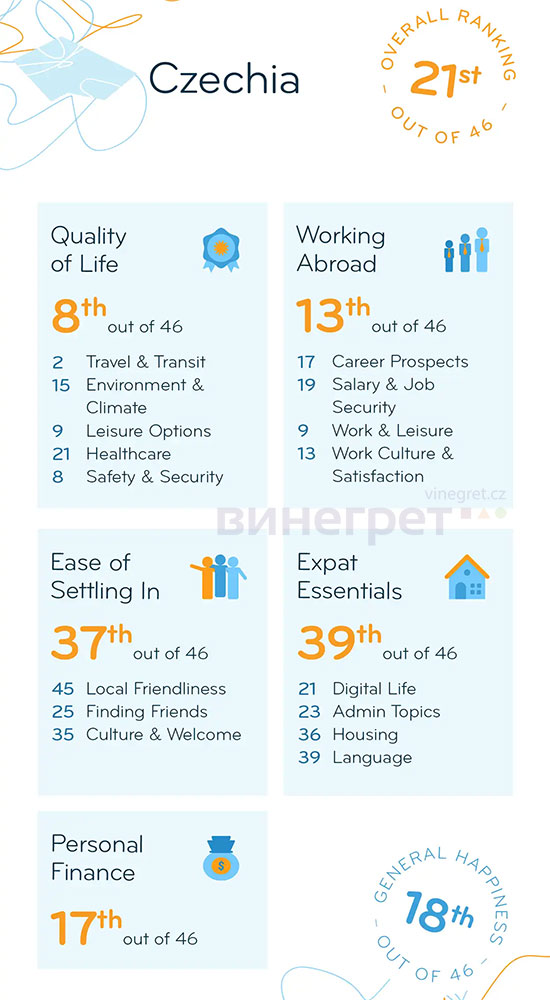 Чехия заняла в рейтинге 21-е место, за год поднявшись сразу на 18 строчек