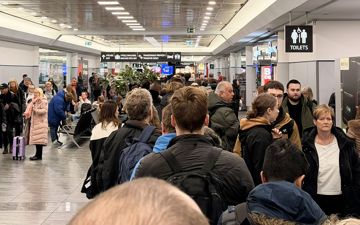 В Терминале-1 аэропорта Праги вновь образовались гигантские очереди на паспортный контроль. Как в зоне вылетов, так и в зоне прилетов. Пассажирам приходится стоять в них больше часа, а нередко и около трех часов.