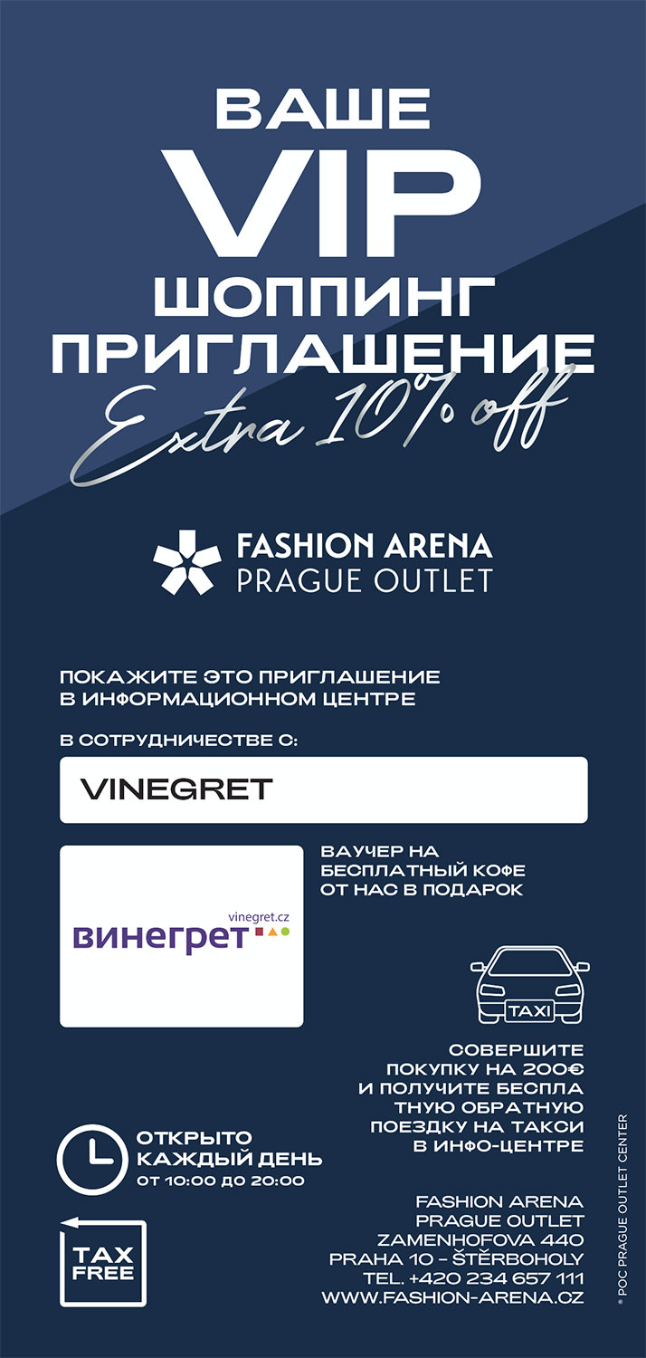 Вдохновляйтесь новыми коллекциями, наслаждайтесь спокойной атмосферой и позвольте себе шопинг, который становится настоящим удовольствием. Fashion Arena Prague Outlet – место, где зимние покупки обретают новый формат.