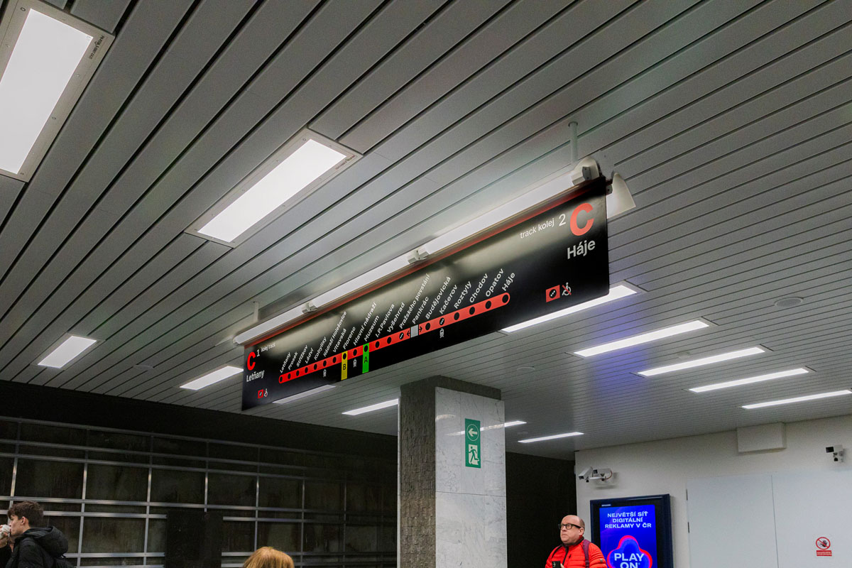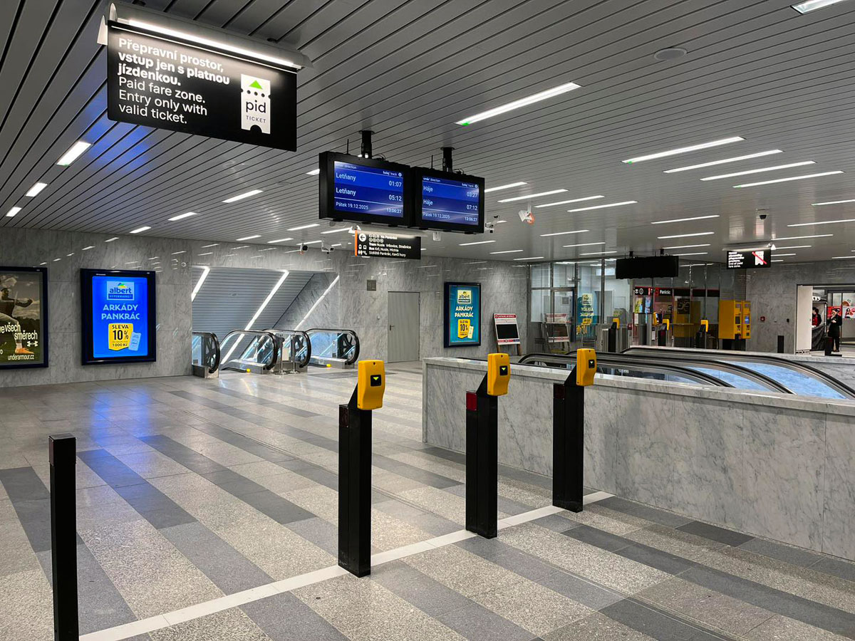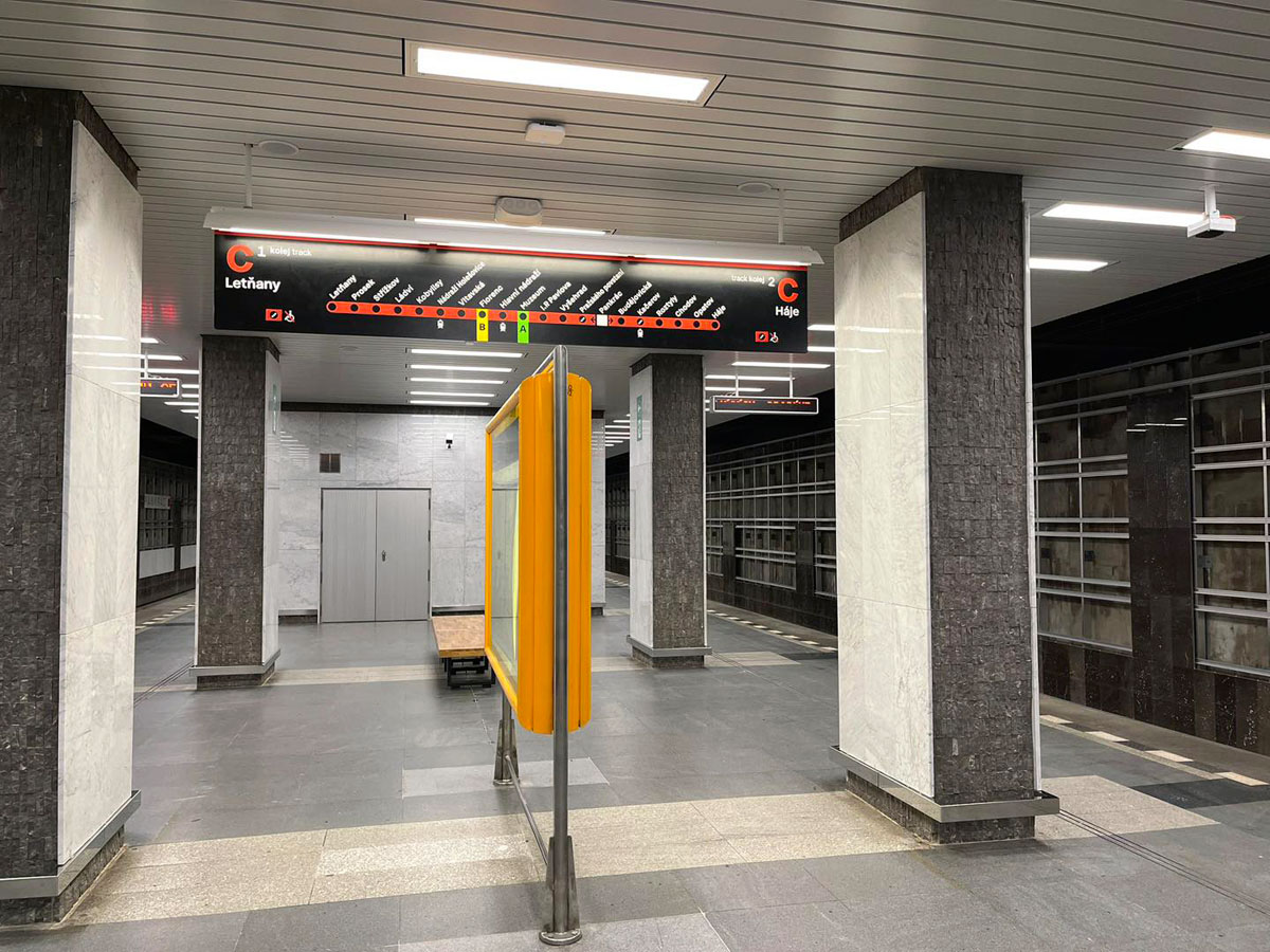 Еще одной новинкой являются стеклянные балюстрады эскалаторов между платформой и вестибюлем, которые для пражского метро не совсем обычны.