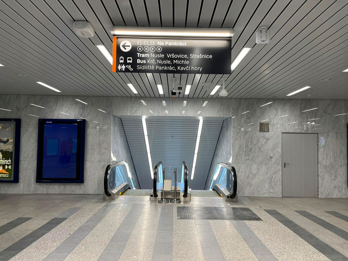 В рамках реконструкции рабочие обновили плитку и коммуникации, установили новые эскалаторы и освещение, построили общественный туалет и создали необходимую инфраструктуру для перехода на одноименную станцию Pankrác строящейся линии D.